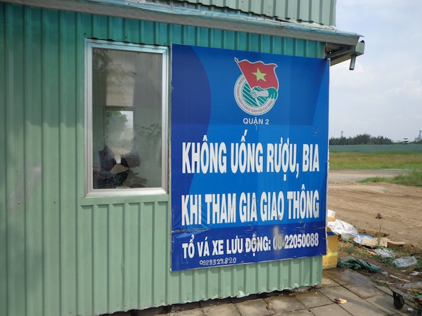 Usually a flat tyre just means a 10 minute delay. But my flat tyre happened on the highway, just through the new tunnel under the Saigon River.