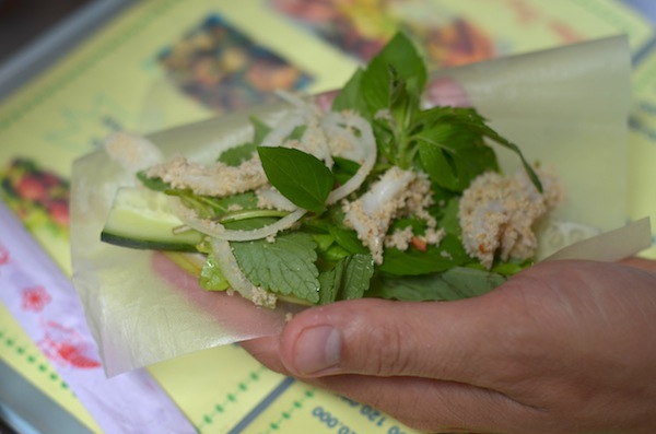 And yes, my sexy hand model (usually known as Darling Man) DID take a huge bite of his gỏi cá mai roll before I could snap a photo. That’s how good it is!