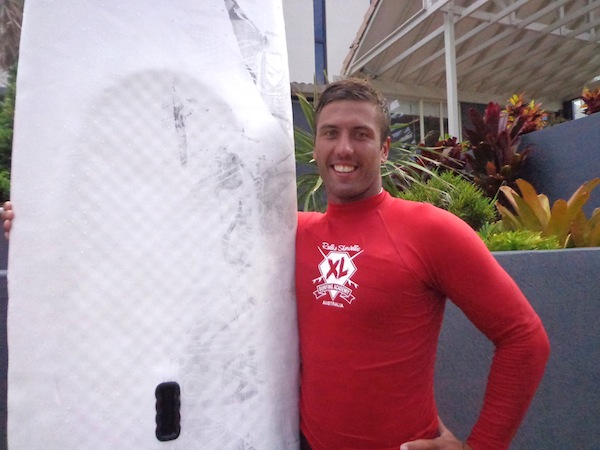 Robbie Sherwell’s surf school is a family affair. His wife Carlene and son Josh are also surfing instructors. However, today Carlene was out with a kickboxing injury. So it was just me and Josh in the class, wearing matching surf school rashies.