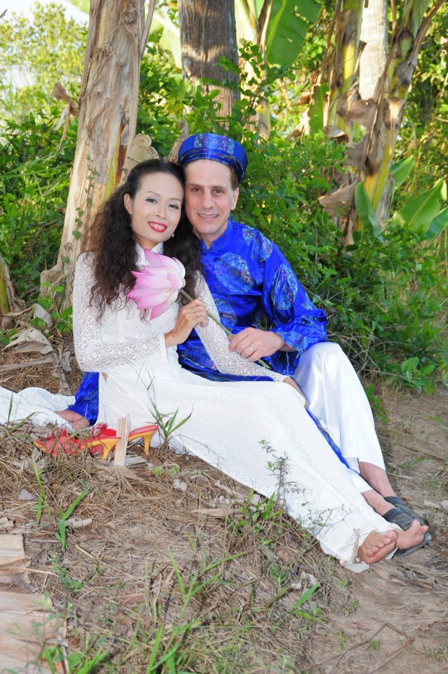 It wasn’t until late Monday morning (after taking Miss M to the doctor for antibiotics for her cough) that we realised we didn’t have any good photos of Thu and Massimo together. Because it was hot in the Mekong Delta and Massimo (like me) isn’t used to the heat. We had a lot of photos of him looking sweaty, but none that captured the true feeling of the two-day wedding party.