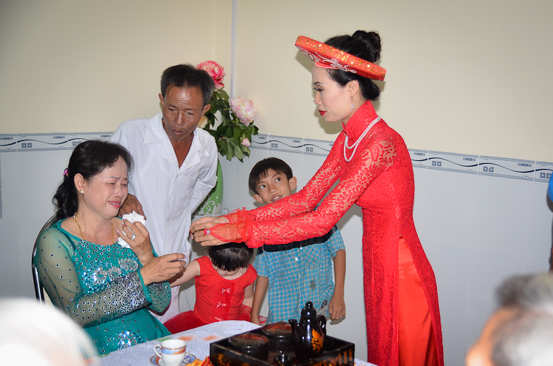 After the prayers, there was a family ceremony. I was roped to act as Massimo’s sister, accepting a tiny ceramic cup of rice wine poured by Thu from a beautiful black teapot. All the important relatives were offered wine. When it was her turn, Ms Thu’s mother dabbed at her her tears with a tissue. I held her hand, worried there was something wrong. But it turns out she was just so happy.