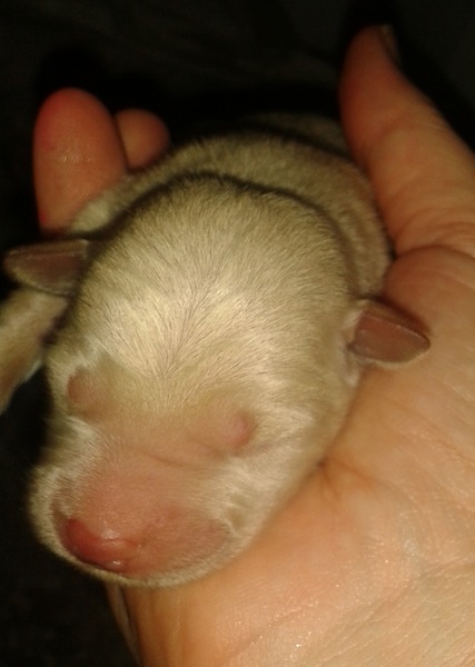When we got home, there were six puppies in the awkward alcove under the stairs. But Mitzie wasn’t finished. With a minimum of fuss, two more popped out. Mitzie the SuperMum licked them all clean and anxiously let us checked each one.