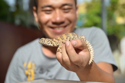 The lizard guy is chuffed by my excitement. He poses for me then points to the back of the cafe.