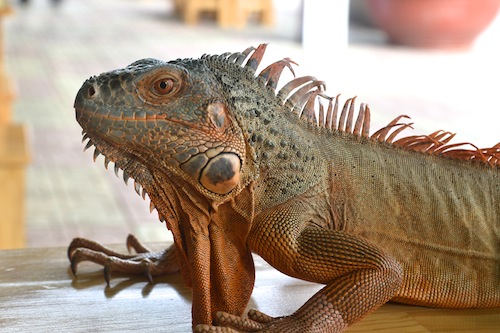 There’s even a second iguana sitting in a palm tree beside the cafe!
