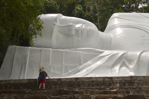 The Giant Buddha itself is accessed by a cable car and then many many steps. Many MANY steps. I’m sure we stepped off as many calories as we consumed during our stay. The 49-metre-long Buddha is very impressive and the temple is a lovely spot to while away several hours.