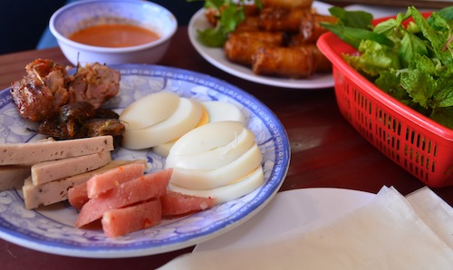 I am not an offal fan at all but luckily my girls weekend sidekick is. She taste-tested the Phan Thiet version of chao long and declared it delicious, peppery and crunchy and chewy and very pleasing to the mouth. She might have even muttered something about umami but I can’t be sure. I was busy eating cha cuon!