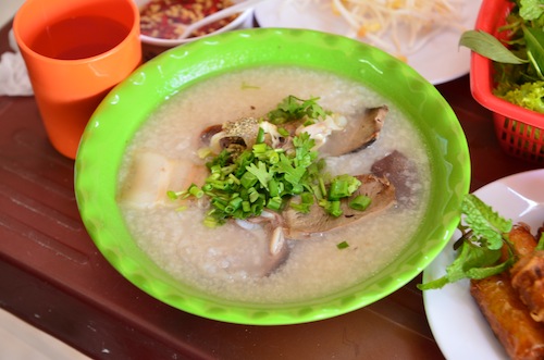 Chao is Darling Man’s go-to comfort food. It’s often translated as rice porridge which I think does it a great injustice (because I don’t like porridge). The Chinese call their version congee and it comes in all kinds of varieties – fish, chicken, beef and pork. However, in southern and central Vietnam, offal rice porridge is the thang.
