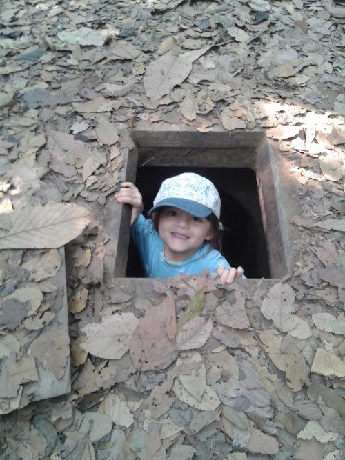 So one sunny Saturday morning, Miss M and I walked to our local bus stop for the full budget experience, getting to the Cu Chi Tunnels by public bus. (To collect a phone number.)
