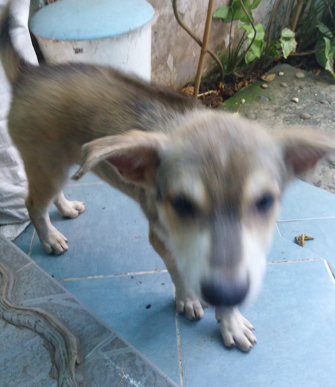 Miss M named him Spy because he had a white dot on his forehead (I could never quite follow the logic of that, but there you go.) He also had a white tip on his tail, a marking Vu said was considered lucky by the Vietnamese. He had a dark ridge down his back, showing that somewhere in his gene pool there was a Phu Quoc dog ancestor.