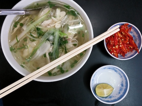 Phở gà is believed to be invented in the 1930s when beef wasn’t sold on Mondays and Fridays. Phở gà is a lighter, clearer soup than phở bò. It can be ordered gà nạc (lean chicken), with slices of breast meat, or bình thường (normal), with chicken pieces of different texture, including some white breast meat, dark meat, skin and fat.
