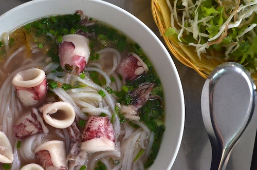 Squid phở is another version that some would argue isn’t really phở. Phở muc has a sweet pork broth, delicately flavoured with ginger.