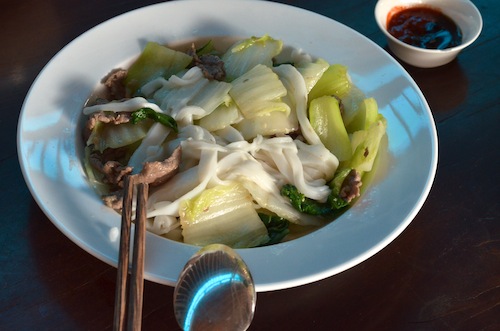 The result should be a tasty beefy dish with a variety of textures of phở that soaks up the gravy.