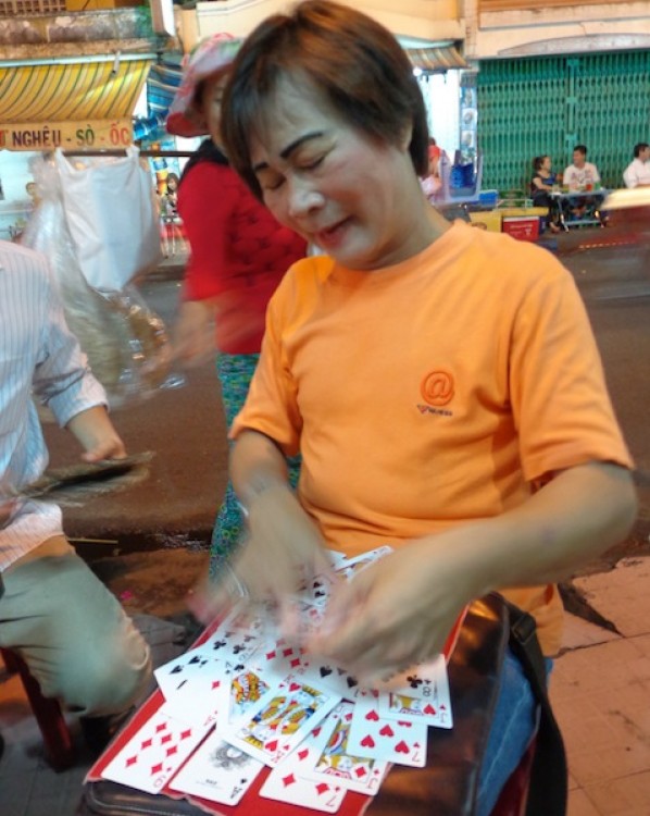 There’s a middle-aged cross-dressing fortune-teller who does the rounds of Snail Street from time to time. He/she has clownish makeup, chipped red nail polish and wears an enormous silver.
