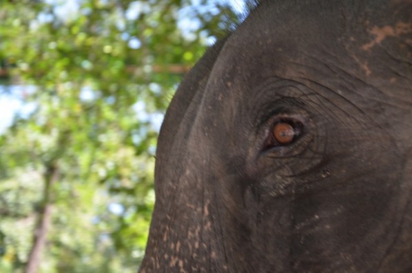 Confronted with two long curved and dangerously pointed tusks — so long they crossed over in front — and a wise elephant eye, I had no choice but to.