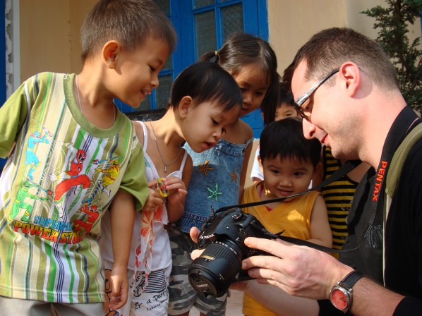 The resort town of Nha Trang. Two French photographers snapping a quaint old church on the edge of town. They spot the school. They cannot resist. They wave through.