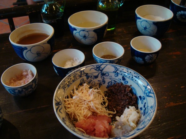 From an elevated bamboo table in a beautiful colonial-style villa, Executive Chef Pham Thi Dieu Dai explains the array of ingredients in front of us – chili, shallots, spring.