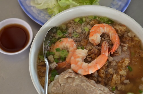 As well as banh bao, Quan Ca Can also does a delicious hu tieu My Tho, the Mekong Delta version of a Cambodian dish called kuy teav. The quality of the ingredients of Quan Ca Can’s hu tieu really stand out, with melt-in-the-mouth pork ribs, lean char siu, ground pork, fresh prawns, bok choy and delicious hand-made wheat noodles.
