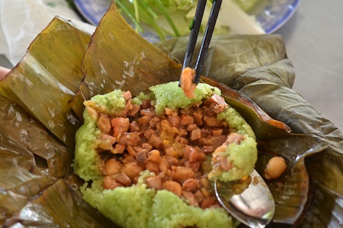 It’s also a very big bowl of soup. You need to come hungry to Quan Ca Can if you want to sample the banh bao, the hu tieu…. and the xoi la sen, royal sticky rice cakes.