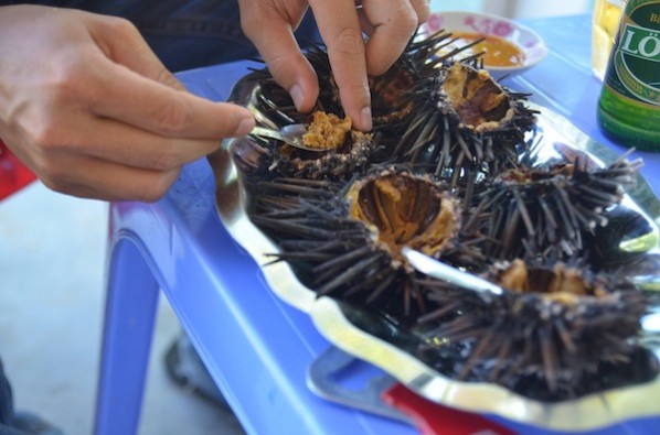 We settle into the tiny plastic chairs at the only restaurant in Nhon Hai, a picturesque fishing village just outside of Quy Nhon on Vietnam’s central coast. The restaurant.