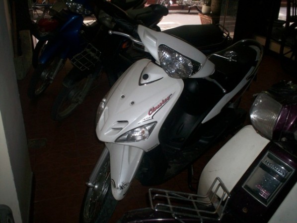 “This is the brake,” Chi said, squeezing the brake levers to demonstrate. “Yep, the same as a bicycle,” I said. “On this bike you have to hold the brake.