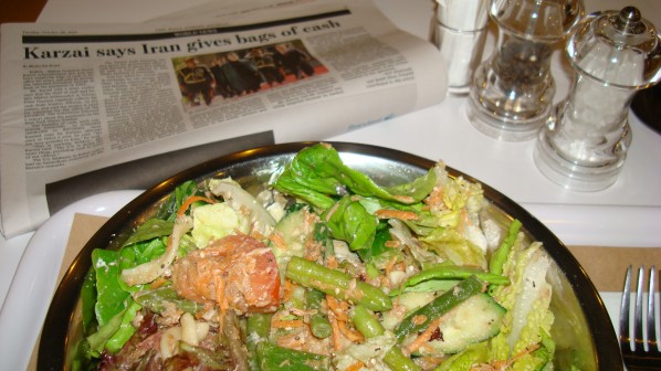 Two guys loudly discuss who to CC into work emails. I read a bit more of the paper, eat a bit more of my expensive salad and try to.
